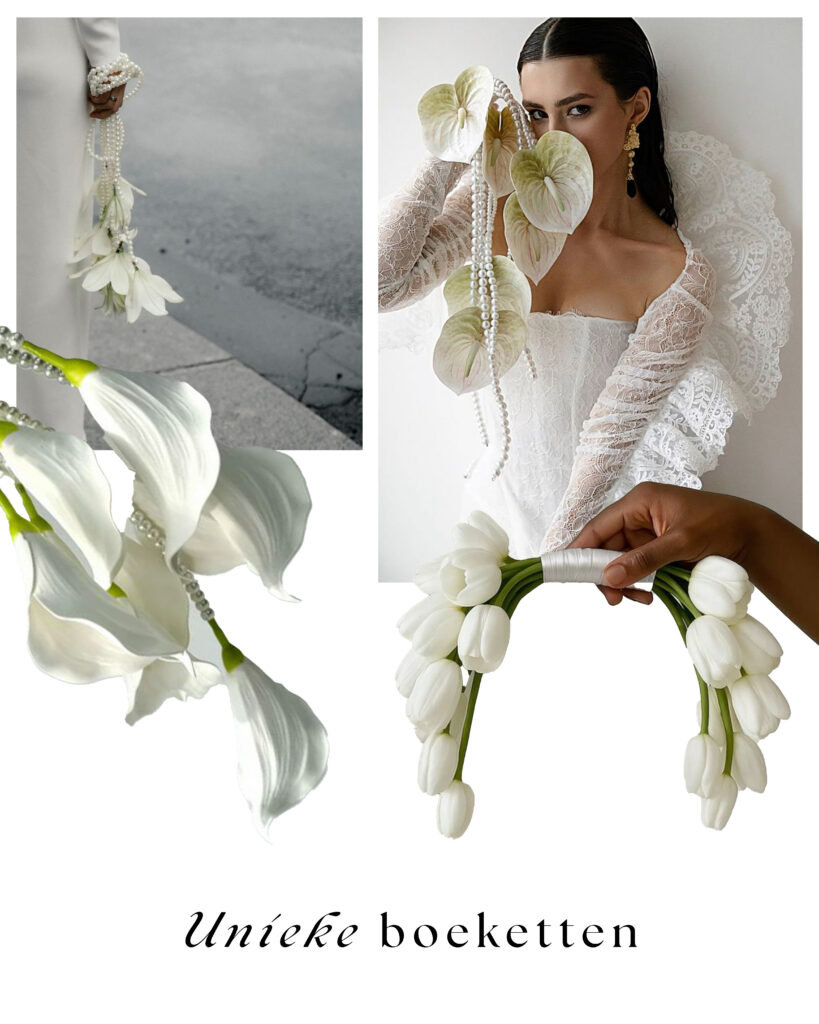 4. ‘Think outside the box’, dat is wat de starter van deze trend heeft gedaan. En wat heeft het opgeleverd? Een hele nieuwe kijk op jouw bruidsboeket. Vooral de combinatie met parels en kralen vind ik ge-wel-dig.